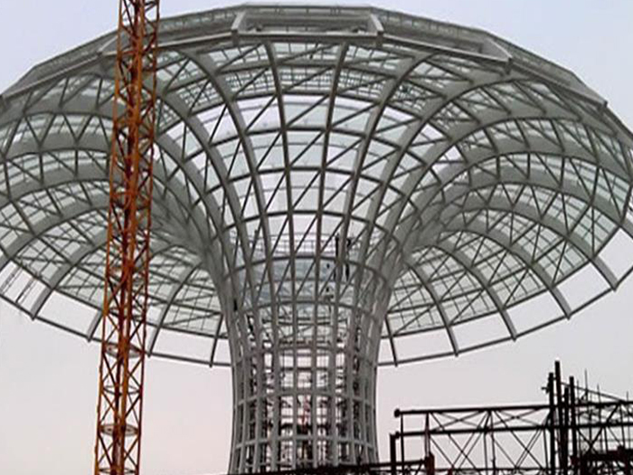 二、球形网架结构因其结构新颖,受力合理,自重轻、用钢量低等优点。如大型体育场馆球形北京螺栓球网架、公共场馆球形网架、电厂北京螺栓球网架、水泥工业球形网架、仓储物流球形网架、北京干煤棚工业球形网架、北京收费站北京加油站球形网架、展览中心、影剧院、商场、航站楼、候车厅、工厂北京车间、仓库、电视塔等球形螺栓球节点网架。国内球形网架结构主要分为:北京焊接球节点网架及螺栓球节点网架两种。螺栓球节点网架其构件工厂内加工量较大,现场安装便捷,适用于现场工期紧,北京施工条件、用电量受制约,网架形状复杂、北京杆件定位困难的异形结构。螺栓球节点球形网架系统基本由北京杆件、螺栓球、支撑支座等组成。按照节点形式可分为交叉北京桁架体系、四角锥体系、三角锥体系等。支撑方式多为固定支座支撑。对于大面积、大跨度及有特殊受力或伸缩要求的网架结构可采用橡胶支座、滑移支座、球铰支座等支撑形式,以满足结构自身的受力稳定、均衡,便于内力释放等设计要求。
